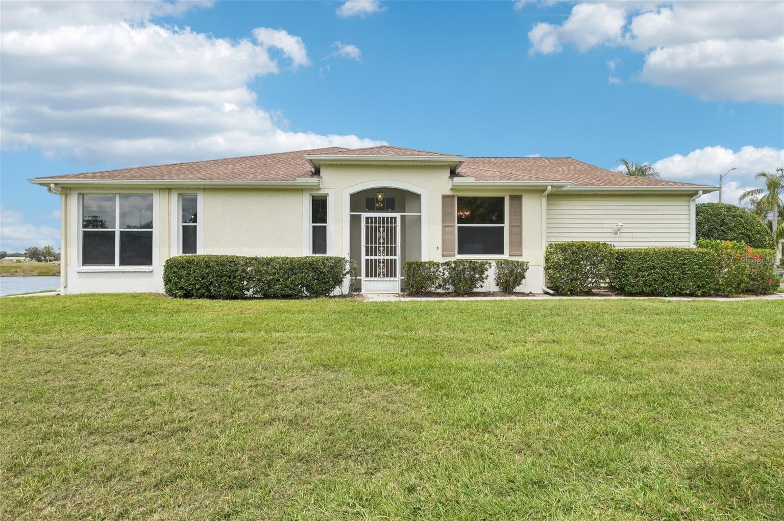 Welcome to this charming 2-bedroom, 2-bath waterfront condo in the desirable Nantucket V community of Sun City Center! This well-maintained home features a rare 2-car garage and a covered side entrance. Nestled on a quiet cul-de-sac and adjacent to a peaceful conservation area, this well-maintained home offers tranquility and privacy in a prime location. Inside, you'll find a spacious living room with high ceilings and abundant natural light streaming in through open windows that perfectly frame a tranquil pond view, creating a serene and inviting atmosphere. The kitchen overlooks the living area and features an eat-at bar--ideal for casual dining and entertaining. You'll also appreciate a dedicated office space and a versatile bonus room, perfect for crafts, storage, or utility needs. The primary suite offers a walk-in closet and a private en-suite bathroom, while a washer/dryer hookup is conveniently located in the garage. You'll love the gated community of Kings Point, which has amazing facilities, pools, clubs and events just waiting for you to enjoy. Located between Sarasota and Tampa, this home is perfectly positioned for a convenient ride to airports, great shopping, dining, and professional entertainment. With easy access to award-winning, sandy beaches, you'll experience the best of all worlds--without the stress of big city life. Leave the hustle behind and embrace a new chapter in Sun City Center, Florida, the state's top-ranked and most affordable 55+ retirement community. Enjoy low-maintenance living in a peaceful waterfront setting with soothing pond views.